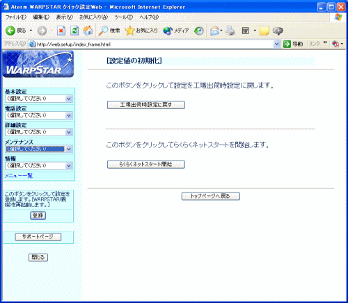 らくらくネットスタートで設定された内容を消去し、再びらくらくネットスタートで設定を行います。