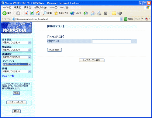 数秒後に画面が切り替わり、PINGテスト結果が表示されます。
