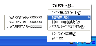 - Windows(R) XPでWL54AG/WL54SC/WL54TU/WL54SUを使用する場合、Windows(R) XPの