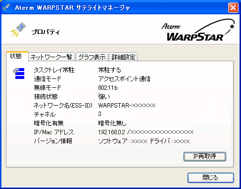 - [スタート]-[すべてのプログラム]-[Aterm WARPSTARユーティリティ]-[サテライトマネージャ]をクリックする