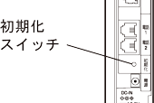 2) 本商品の背面にある初期化スイッチを、細い棒状のもの(つまようじなど電気を通さない材質のもの)で3秒以上押し続け、本商品前面のPOWERランプ、ステータスランプ、電話サービスランプ、インターネットランプ、無線ランプが緑点灯したら離す