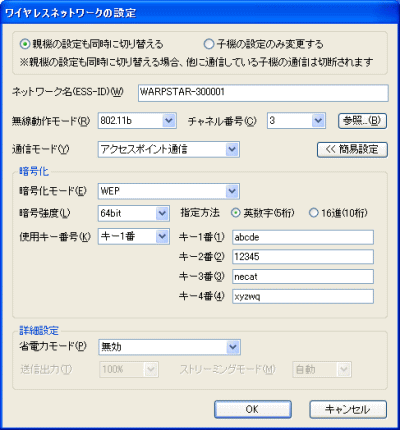 | サテライトマネージャの[設定]は、無線LAN端末(子機)側の設定をするユーティリティです。 |