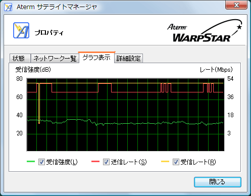 現在の無線の受信強度をグラフで表示します。 |