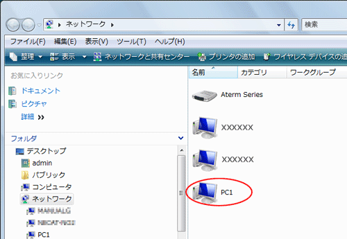 同じワークグループにあるパソコンの一覧が表示されます。