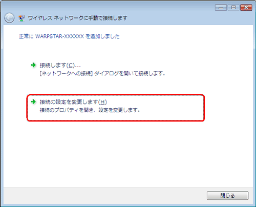 設定内容を変更する場合は、[接続の設定を変更します]をクリックします。 |