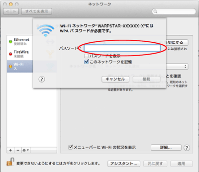 ※[システム環境設定]-[ネットワーク]またはツールバーのAirMac状況表示からも確認できます。 |