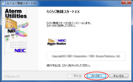 Windows(R) 7/XPまたはWindows Vista(R)の場合は、[スタート](Windows(R) のロゴボタン)-[すべてのプログラム]-[らくらく無線スタートEX]をクリックします。