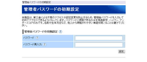 (2回目以降のログイン時には、管理者パスワード設定の画面は表示されません。) |