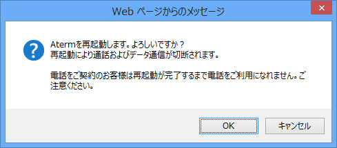 再起動を行うと設定内容が失われます。再起動する前に必要に応じて本商品の設定内容を保存してください。