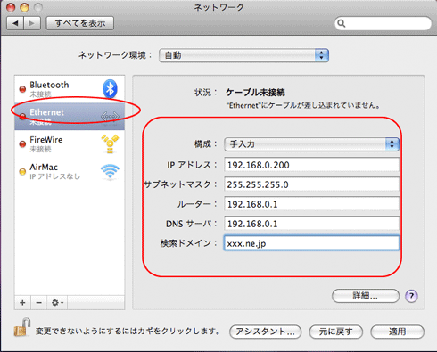 アップルメニューの[システム環境設定]-[ネットワーク]を開く |