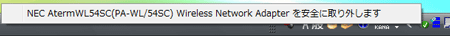 [NEC AtermWL54SC(PA-WL/54SC) Wireless Network Adapter を安全に取り外します]をクリックする |