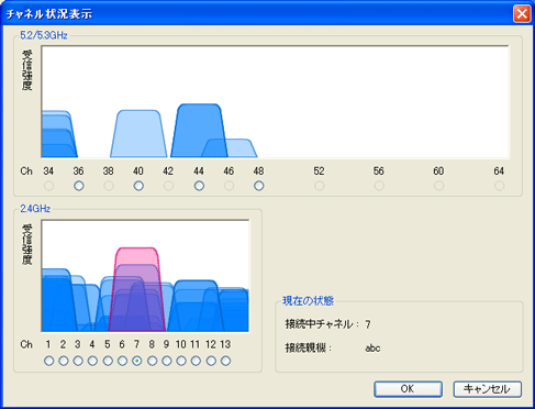 802.11aモードを使用する場合は、W52(36,40,44,48ch)のみでご利用になれます。 |