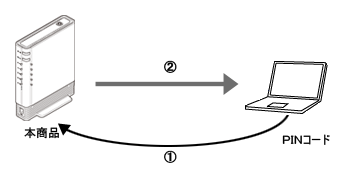 | 無線LAN端末(子機)のPINコードを本商品に入力することで、本商品の無線設定を無線LAN端末(子機)に設定します。 |