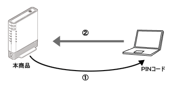 本商品のPINコードを無線LAN端末(子機)に入力することで、無線LAN端末(子機)の無線設定を本商品に設定します。