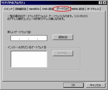 | 3. | [ゲートウェイ]タブをクリックし、何も指定されていないことを確認する |