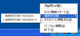 [スタート]-[すべてのプログラム]-[Aterm WARPSTARユーティリティ]-[サテライトマネージャ]をクリックするとタスクトレイにある[サテライトマネージャ]が表示されます。