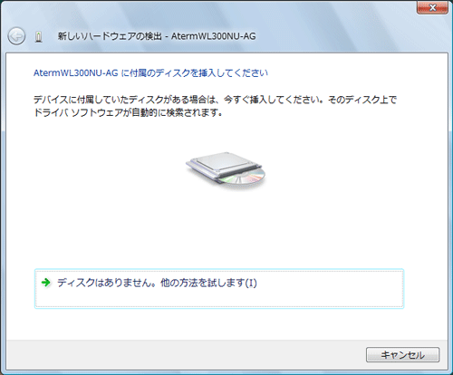 Windows Vista(R)のパソコンに、無線LAN端末子機(WL300NU-AG/WL300NU-G)のドライバをインストールします。