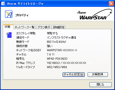 現在接続している無線LAN端末(子機)の11aモードタイプが表示されます。 |