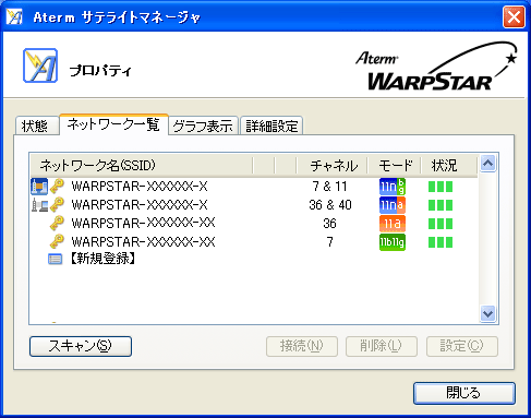 - Windows(R) XPでWL300NU-AGを使用する場合、Windows(R) XPの「ワイヤレスネットワーク接続で設定」した場合は、サテライトマネージャは、ご使用できません。