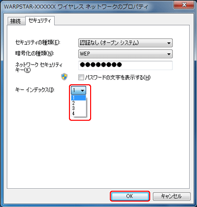 [セキュリティキー]に本商品の暗号化キー(WEPキー)を入力する |