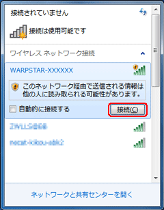 本商品のネットワーク名(SSID)を選択し[接続]をクリックする |