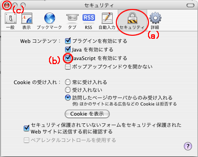 [JavaScriptを有効にする] にチェックを入れる(<図1>の(b))