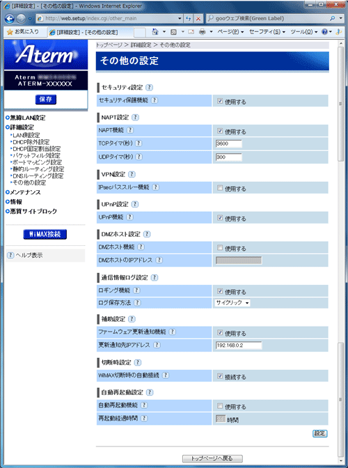 | ルータのセキュリティ機能に関する設定を行います。 |