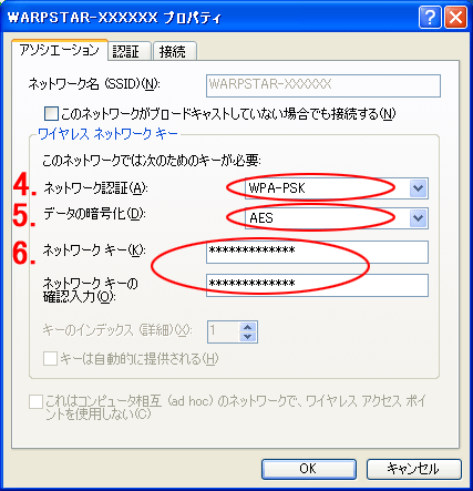 <暗号化をWEPで設定する場合>