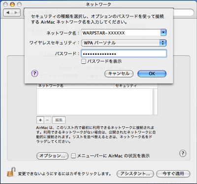 AirMacを使用していることの確認は下記でもできます。
