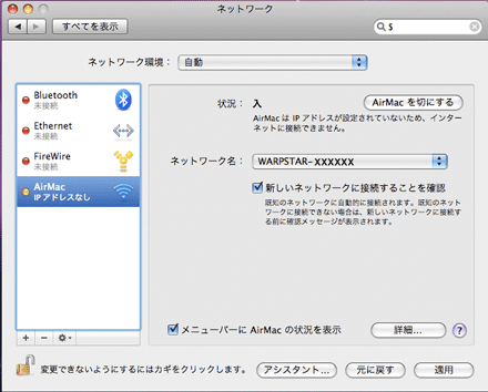 ・[システム環境設定]-[ネットワーク]