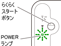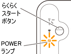 しばらく待ってPOWERランプが橙点滅に変わったら、らくらくスタートボタンを長押し(約6秒)して、POWERランプが橙点灯になったら放す |