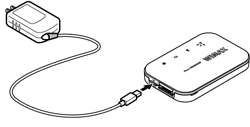 本商品のUSBポートに、ACアダプタ(添付品)のUSBプラグを接続する |