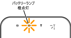 充電が完了するとバッテリーランプが消灯します。(動作中の充電の場合は、緑点灯になります。) |