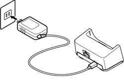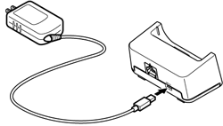 | 本体に直接接続して充電する場合と、クレードル(オプション品)にACアダプタを接続して充電する方法があります。 |