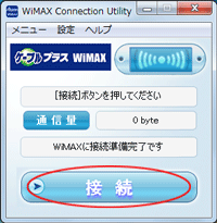 WiMAX Connection Utilityを起動したあと、[接続]をクリックしてネットワークに接続します。 |
