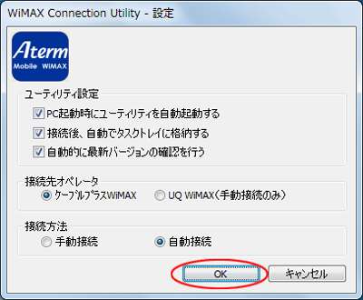 WiMAX Connection Utilityを起動したときに自動的にネットワーク接続します。