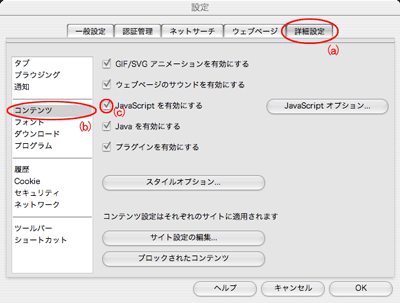 [JavaScriptを有効にする]にチェックする(<図1>の(c))