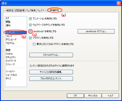 [JavaScriptを有効にする]にチェックする(<図1>の(c))