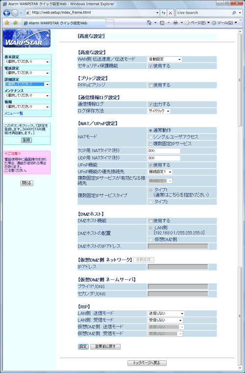 LAN側にRIP Version2対応のルータしかない場合は、これを選択するとLAN側パソコンの負荷が減ります。