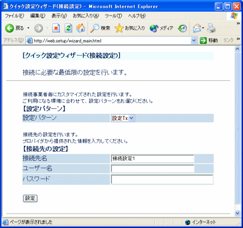 「クイック設定ウィザード」とは、工場出荷初期状態で初めて