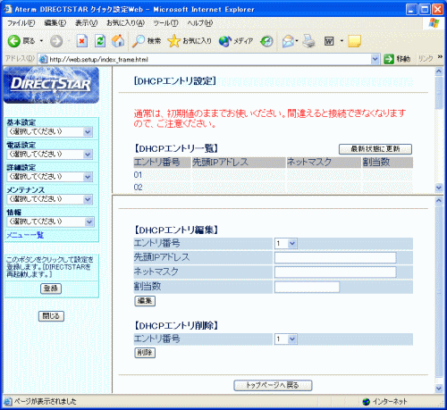 | ■DHCPエントリ編集 |
