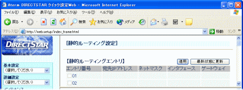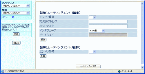 | ■静的ルーティングエントリ編集 | |||||||||||||||||||||||||||||||||||||