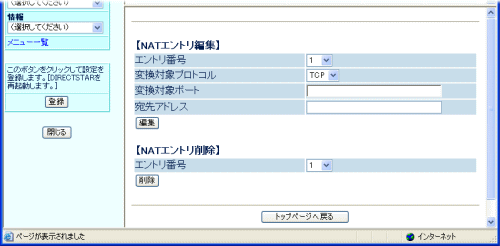 本商品では、[NATエントリ]のパターンを最大50個設定できます。 |