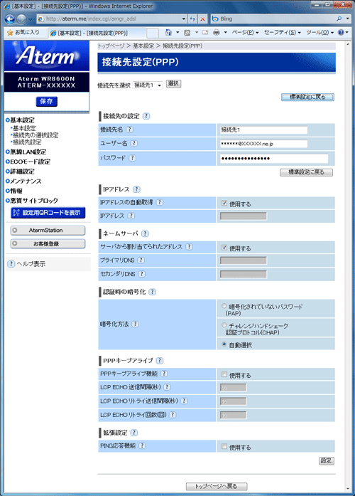 PPPoE接続時にプロバイダから割り当てられるIPアドレスを使用する場合は、チェックします。