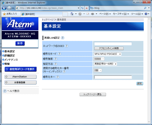 WL300NE-AGのIPアドレスを変更した場合は、そのIPアドレスを入力してください。
