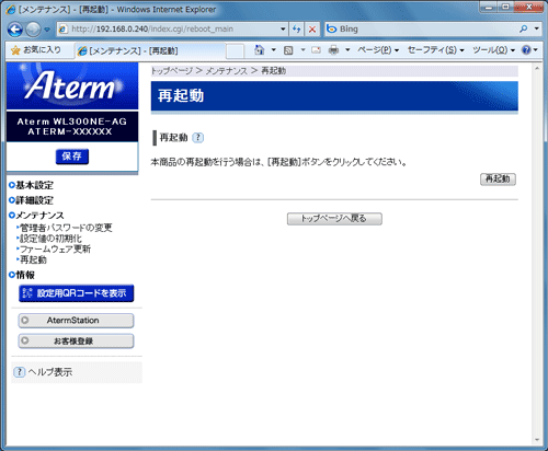 AtermStation(http://121ware.com/aterm/)、お客様登録のページにリンクしています。