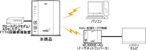 (接続方法はWL300NE-AGに添付の取扱説明書をご覧ください。) |