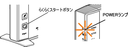 無線LANアクセスポイント(親機)のらくらくスタートボタンを長押し(約6秒)、POWERランプが緑点滅になったら離す