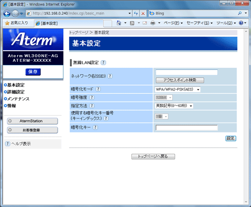 WL300NE-AGのIPアドレスを変更した場合は、そのIPアドレスを入力してください。