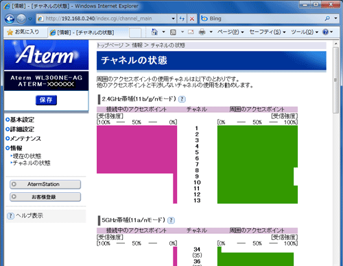 | 周囲の無線LANアクセスポイント(親機)のチャネルの状態を表示します。 |